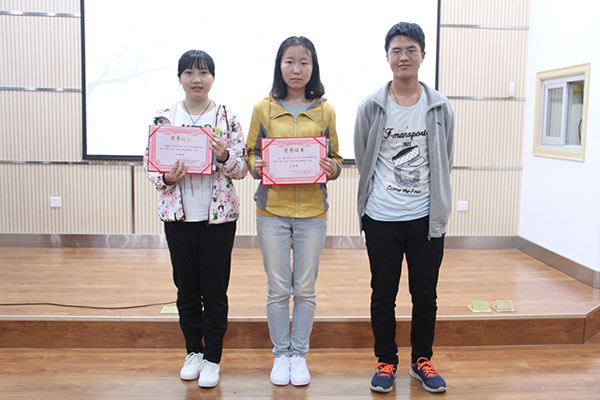 2016级辅导员闫颢芯为一等奖获得者颁奖