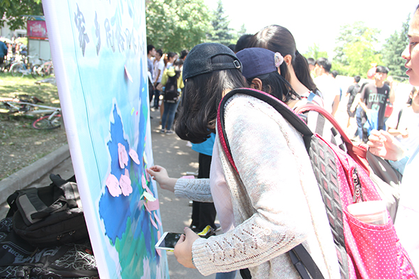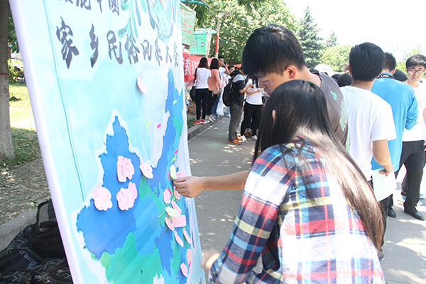 本次活动旨在为给学生提供展示家乡风采的平台,寄情家乡美好的机会。活动前期准备充分,为后期宣传工作的顺利展开打下了良好的基础。活动当天,创意独特的中国地图海报吸引来往学生频频驻足,同学们纷纷在便利贴上写下对家乡的寄语,并标注好自己的名字与家乡,再将其黏贴在地图中家乡的位置上。参与学生络绎不绝,字里行间都浓缩着同学们对家乡深切的爱,一位前来参加活动的同学表示:“看到家乡就果断跑过来了,我对家乡的爱难割难舍,很感谢动科学院给我这次‘表白’家乡的机会。” 海角网 文艺部部委白泽宇发表感言:“看到大家提笔寄语,我想要立刻回到家乡,看一下它的秀丽风景,它的一草一木,这种血脉相连的感觉我毕生难忘。”寄情家乡的同时,海角网 学生干部还为每位参与活动的同学送上了精美的礼品,现场氛围十分热烈。