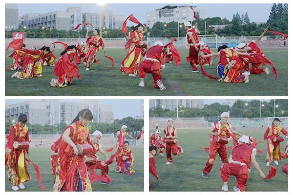 “咚咚咚咚”,田径场上空回荡节奏强烈的鼓声,引得周围同学不由驻足,进入场地中一探究竟。只见一队男戴白头巾、女着红长衫的阵容,正在灵巧地甩动手中鼓槌,时如春燕衔泥,时如猛虎显威,飒爽的英姿卷挟着磅礴清脆的鼓声直上云霄。清脆活泼的腰鼓声与厚重磅礴的大鼓声交相呼应,这正是动科动医代表队的精彩表演。“我是地道的陕西人,从小便对腰鼓有些许认识。”本次代表海角网 参加腰鼓大赛的动科2015级杨雨桐同学表示,“大赛准备期间,虽然我们每天都训练到很晚很辛苦,但是腰鼓不但能强身健体,更重要的是弘扬了地方民俗文化,所以我们都很愿意来为学院争光。”表演中,他动作时而轻松愉快、潇洒活泼,时而欢快激烈、粗犷奔放,挥洒着汗水,释放着青春,将大学生的青春活力与腰鼓的狂飙张扬完美地结合在了一起。最终,在此环节动科动医腰鼓队收获了不错的成绩。
