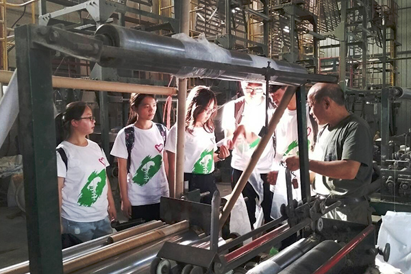 走进农用塑料膜生产车间,一行人一边惊叹对生产流程的现代化,一边仔细聆听负责人对工厂的生产模式及运营机制的细致讲解。负责人谈到,公司目前打算将一带一路与工厂生产相结合,早日实现经济转型,以应对当前严峻的经济形式。一行人还同负责人畅谈现代科技下的技术发展,一番交谈中,大家意识到技术革新和经济转型对于企业生存的重要性,也鼓舞了在场队员们积极思考,灵活运用所学知识结果解决企业生产中的实际问题。