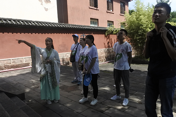导游为队员们介绍孔庙
