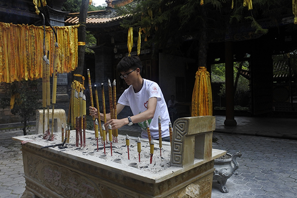 队员在孔庙烧香祭奠孔子