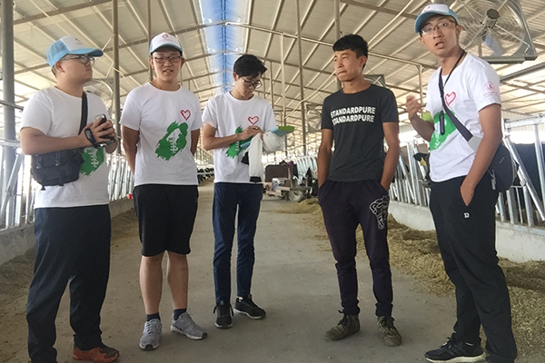 队员们深入牛场,和牛进行了超近距离接触,跳出课本,将所学知识用于实践中,学以致用。牛场内先进的仪器、精湛的技术以及高效的工作令队员们赞叹不已。通过本此调研,队员们了解到宁德利养殖场的养殖模式比盘龙山繁育场更科学、更卫生。本此调研不仅丰富了队员们的调研结果,为争夺“发言权”增加了可能,更坚定了队员们调研的信心。