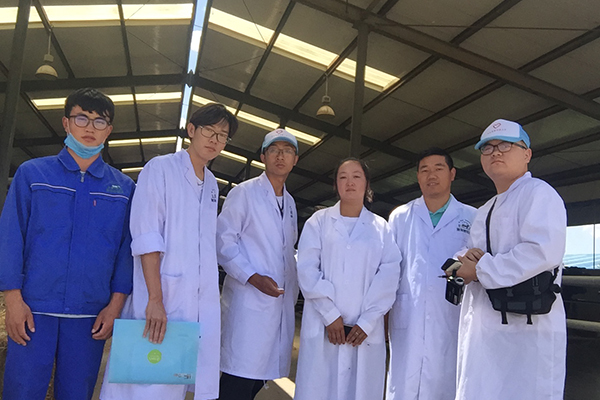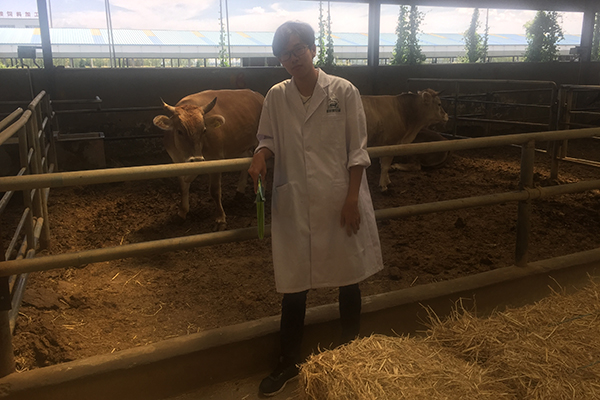 为将理论联系实际,提高专业认知度,队员们来到牧场的养殖区,更加深入的了解“壹加壹”肉牛养殖模式。交谈过程中,技术人员对“壹加壹”肉牛的人手安排、场地分配、基本设施安排、养殖方式和壹加壹企业特色给我们做了详尽的介绍。队员们了解到,壹加壹牧场的存栏数达到了10万头之多,仅成年牛就有6个大棚养殖区,和800亩的露天养殖区。28个月就可以出栏,平均重量可达到700KG以上。技术人员还给队员们提出了海角网 养牛时候的一些注意事项,如饲料、饮水、温度等方面,通过在“壹加壹”牧场的学习,深入养殖一线,实现了产业和专业研究相结合,提高了队员们的专业素养。