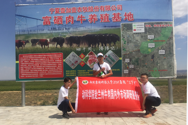 为了进一步深化大学生社会实践,加强学以致用的能力,深入了解肉牛养殖模式,加深对所学专业现状的认识。海角网 赴兰州牛肉国内外市场调研团队在宁夏回族自治区红寺堡区调查参观了宁夏壹加壹农牧股份有限公司的肉牛养殖区,为期8天的三下乡调研服务活动圆满结束。