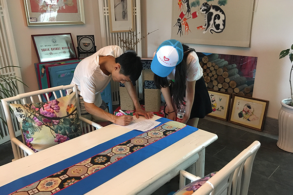 “您这画全部都是手工制作吗?”“年画每年的收益可观吗?”在绵竹木板年画传习基地,队员们和李强老师进行了短暂的交流。李强老师说:“绵竹年画是四川人民的骄傲,也是中国人民的骄傲。随着人们对于传统文化日益关注,绵竹的年画的发展也呈现上升趋势,整个年画村的游客量日益增加,收入相对可观”。