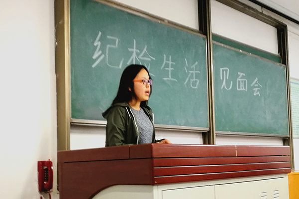 纪检部部长杨堤贻向同学们宣读纪检部条例