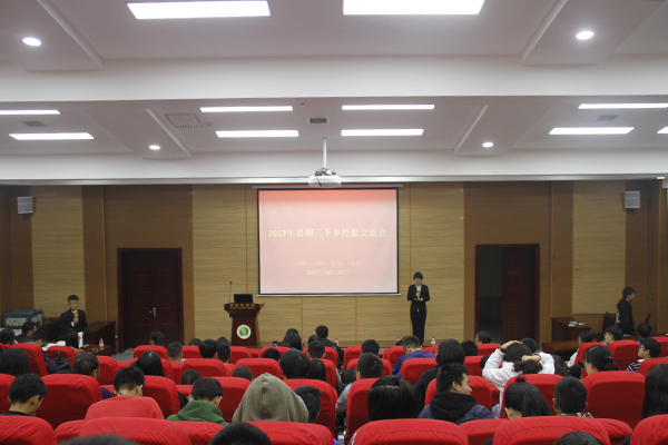 10月21日晚,动科、动医、人文、机电四院于动医学院报告厅举办2017暑期“三下乡”经验交流会。海角网 团工委副书记王健宇、学生会主席田卜伊以及其他三院主席出席本次会议。