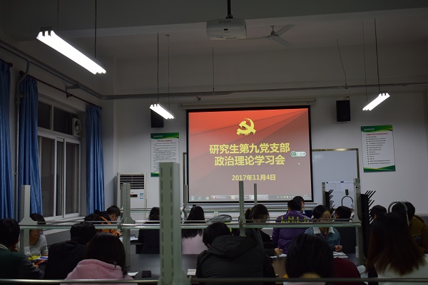 11月4日晚上7点,动科学院研究生第九党支部于动科527室召开理论学习会议,为了便于大家更好学习党章、遵守党章、贯彻党章、维护党章,本次会议主题是对党的十九大通过的党章修正案进行系统、全面、深入的学习,本支部22名党员和3名入党积极分子均参与了本次理论学习会议。