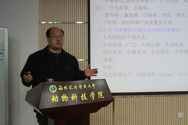 任战军教授在107会议室为同学们讲解动物福利与保健