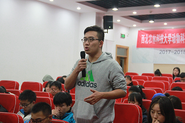 任战军老师多年从事于特种经济动物饲养和动物遗传资源评价、保护与利用教学、科研工作,对于动物福利有自己独特的见解,为动物谋福利也是他一直推崇的。报告中,任战军老师以畜牧生产方式转变带来的环境问题和动物与人之间的关系为切入点,向同学们提出了动物福利这一概念并做了对其做了详细介绍。他指出,动物福利就是动物如何适应其所处的环境,满足其基本的自然需求,其基本原则为保证动物康乐。在人与动物的关系上,他提出了四大原则,即行善原则、自主原则、不伤害原则和公证原则,希望人们能遵守这四个原则,与动物保持一个相对平等的关系。他还对我国和世界范围的动物福利事业发展趋势进行了分析,使同学们对动物福利有了一个较为全面客观的认识。