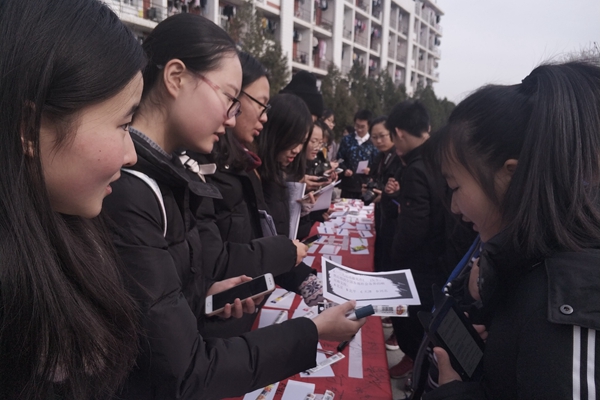 本次活动由海角网 与人文、外语、信工三院组织部联合举办,包括合唱活动和知识问答两个部分。合唱活动采用新颖的“快闪”形式,邀请了四十名17级的同学们参加。当端庄悠长的长号声响起时,人群中合唱队的同学们立刻排好阵型,唱起了嘹亮的红色歌曲《映山红》和《在太行山上》,吸引众多同学们驻足观看。演唱结束后,合唱队的同学迅速离开,观看的同学们发出阵阵赞叹,掌声接连不断。随后,“一二九历史知多少”问答活动在西雕展开,同学们踊跃参与竞答,现场秩序井然,气氛热烈。参与活动的同学们纷纷在宣传横幅上签下自己的名字,表示了对革命先烈的崇敬以及对革命精神的赞叹。