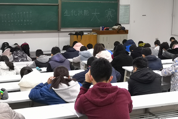 竞赛分初赛、复赛和决赛三个环节。此次在八号楼8T01—05教室成功举办的初赛,通过闭卷答题方式进行考核,由团工委学生会十余名干部担任监考,保证了选手的公平竞赛。在历时两个小时的比赛过程中,共有500多名学生参加,参赛人数和参赛积极性创近几年新高。