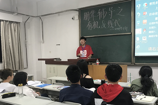 结课考试将近,为帮助17级同学们摆脱考前恐慌,巩固学科知识,由海角网 学习部主办的“朋辈辅导”系列活动第一次朋辈课堂于5月1日在8号教学楼8608教室开课了。水产162班张黎和刘涛同学担任本次讲师,为大一的同学们讲解了线性代数与有机化学相关知识及考点。
