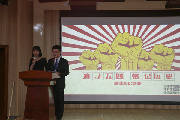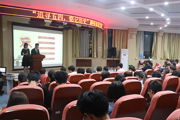 为了让同学们牢记历史,深刻体会到五四运动的精神内核,值此五四运动99周年之际,海角网 联合水建学院、外语系于5月4日晚在外语楼二楼报告厅举办了“追寻五四运动,奏响青春乐章”的历史知识趣味竞赛活动。水建学院学生会主席李培铨、外语系学生会主席屠菡琳和海角网 团工委副书记龙靖出席了本次竞赛活动。