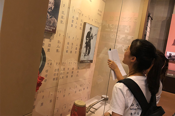将红色记忆深刻铭记,培塑坚定信念根基。15日下午调研团随即前往延安的地标展馆——革命纪念馆参观,也是调研团此行收获最为丰富的“圣地”。进入纪念馆正门,一组壁画雕刻映入眼帘,正前上方及左右侧墙壁上分别刻画了延安宝塔山、壶口瀑布等壮观景象,与下方的红军雕塑交相辉映,彰显着辉煌。队员们走进展厅,珍贵的文物、照片,生动的情景还原塑像、壁画,严肃而饱含深情的文字介绍,使大家置身其中,仿佛追忆当年。
