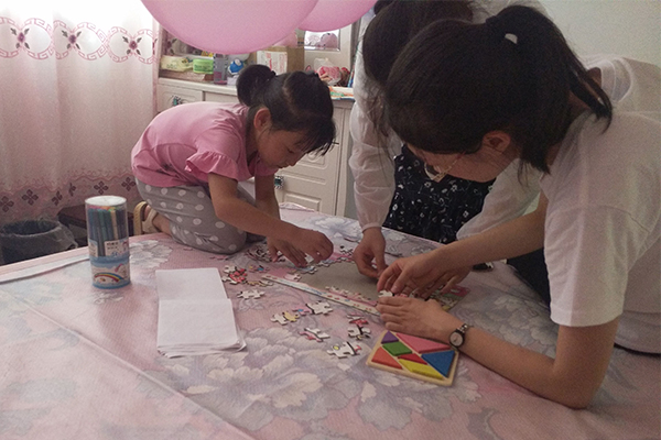 学习辅导完毕,孩子发出和调研队员做游戏的邀请。调研队员们与孩子一起吹气球、拼拼图、绘画,做一些充满童趣的游戏。在此期间,孩子们和调研队员身心放松,其乐融融,为志愿支教活动携来欢乐时光。周欣怡小朋友在调研队员即将离开时对他们说到:“谢谢哥哥姐姐们陪我玩。”随即拥抱了一位调查队员,离别之际带来了无尽的感伤和不舍。