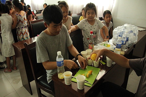 下午的实验课上,在队员们的指导和帮助下,学生们完成了自制柠檬汽水的实验。在实验中他们不仅学习了化学知识,更是懂得了与他人分工合作的重要性。在轮流品尝实验成果时,孩子们都开心的笑了——这一刻成就感的味道就如同柠檬汽水般可口。