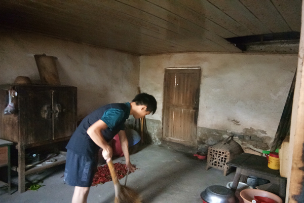 调研队员帮忙扫地
