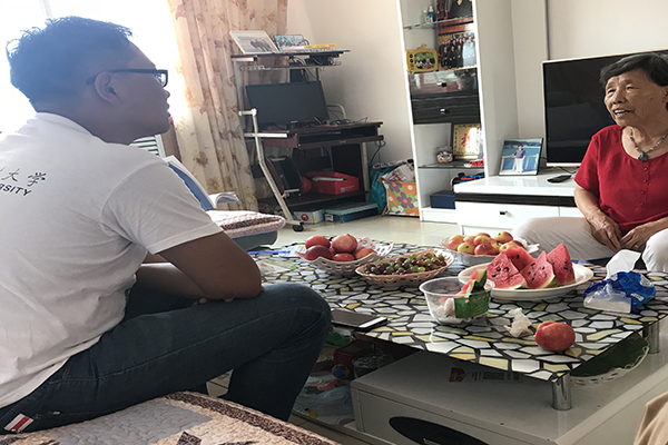 7月27日,赴河北省承德塞罕坝科学调研队前往围场镇赛罕小区,采访了塞罕坝机械林场的退休干部——原塞罕坝工会主席刘玉红女士。刘女士现已年逾八旬,依然十分热情地接待了团队成员。在老人的回忆下,调研团队对过去林场的建设条件、塞罕坝人的建设精神进行了学习。