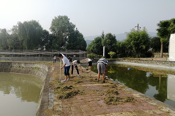 为了让鱼塘更加整洁,使站内环境看上去更加自然,在水产站张斌鑫学长的带领下,调研队义务进行了杂草清除工作,面对眼前密密麻麻的小草,部分调研队成员们耐心、仔细地用小铲清理着,其他成员就主动清理垃圾,扫树叶。经过两个多小时的辛苦劳动,水产站绿化带旧貌换新颜。大家纷纷表示,为试验站做一些力所能及的事情,感到非常地光荣和自豪,希望通过自己的点滴行动,还安康水站试验站一片清洁。