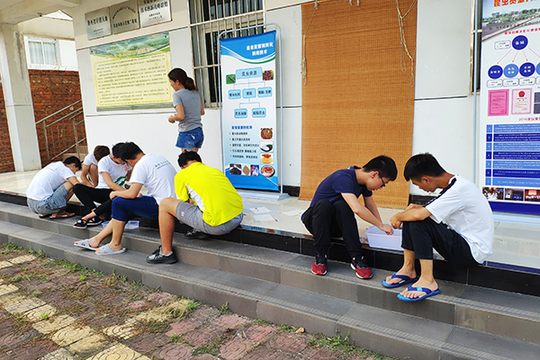 黑水虻为腐生性的水虻科昆虫,能够取食禽畜粪便和生活垃圾,生产高价值的动物蛋白饲料,因其繁殖迅速,生物量大,食性广泛、吸收转化率高,容易管理、饲养成本低,动物适口性好等特点,从而进行资源化利用,可提取其体内蛋白做成鱼的饲料。站内工作人员向调研队成员详细介绍了黑水虻的实验价值和实验方法,同时在工作人员的带领下,调研队成员对黑水虻的幼虫进行了数量统计,体会了实际生产中的理论应用。