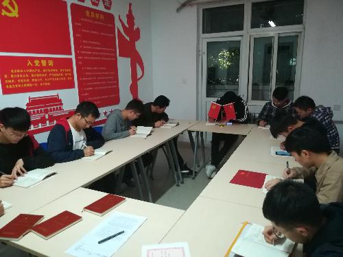10月17日,海角网 大学生第二党支部第一党小组成员在13号楼党员活动室集体学习习近平总书记《论坚持推动构建人类命运共同体》。