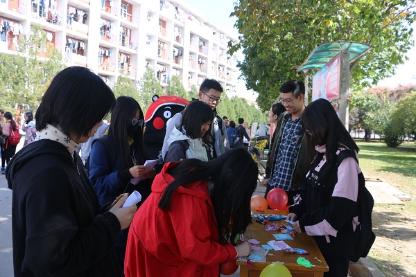 为大力宣传心理健康知识,进一步提升身心修养,缓解新生刚入学时因为不适应大学生活而产生的种种心理问题,帮助新生尽快走出迷茫,适应大学生活,学院心理健康部联合权益部于10月26日中午在西雕举行“心灵树洞”活动,借助本次活动让新生更加关注、重视自己的心理世界,学会适时适度地调节心态、抒发不良情绪,为更好的度过大学生活打下基础。