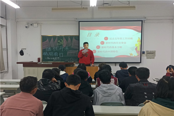2017年10月18日至10月24日中国共产党第十九次全国代表大会在北京召开。会上,习近平总书记代表第十八届中央委员会向大会作了题为《决胜全面建成小康社会 夺取新时代中国特色社会主义伟大胜利》的报告,大会以“不忘初心,牢记使命,高举中国特色社会主义伟大旗帜,决胜全面建成小康社会,夺取新时代中国特色社会主义伟大胜利,为实现中华民族伟大复兴的中国梦不懈奋斗”为主题,为新时代中国特色社会主义的发展指明了方向,也为当代青年学子如何更好地投入到实现中华民族伟大复兴的宏伟事业中去指明了道路。