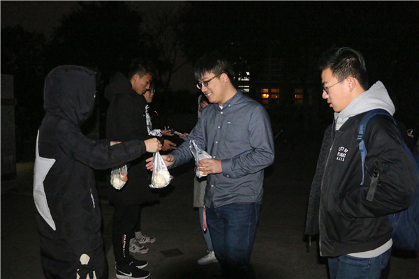 随着“冬晨送温暖”活动的逐步开展,该活动受到越来越多的好评,以至于每天打早卡活动尚未开始就已经有许多同学在一旁等待,热乎乎的爱心早餐也送到了他们的手上。在这一周内,打早卡开始不到两分钟早餐便被送完,足以看出同学们对此次活动的喜爱和支持。