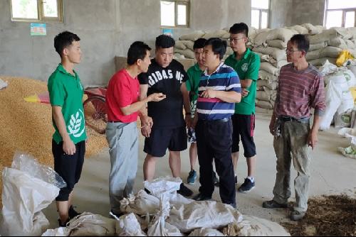 图为团队在饲料车间查看中药渣