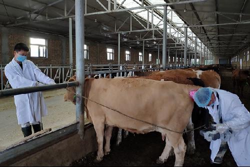 下午,团队与肉牛良种繁育基地的李毓华前往牛舍,对前几日进行人工授精的母牛进行B超检查。检查结果显示进行人工授精的30头母牛中共有16头母牛怀孕,并且10头母牛怀上双犊,结果说明本次人工授精效果良好,取得了令人满意的成果。