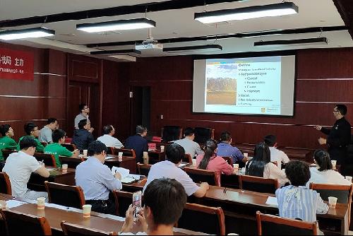 曼尼托巴大学的Argenis Rodas 教授从加拿大肉牛养殖饲喂方式和减少动物应激和交叉感染两个方面进行论述。在加拿大,肉牛养殖遵循一定的时间规律,并且按照严格的标准对不同时期的肉牛进行分群。并且加拿大成立了肉牛联盟等诸多协会以及研究机构,参与肉牛的饲、屠宰及加工等各个环节,改善肉牛品质。因为应激和交叉感染会降低牛肉的品质,加拿大对肉牛繁育,以及运输、屠宰、加工等环节都提出了严苛的要求,以求获得更加高品质的牛肉。会后团队一行人与Argenis Rodas 教授沟通交流,了解到在加拿大,屠宰场会将牛血等物质分离提纯,加工成血粉等诸多高价值副产品。因为加拿大人喜欢吃雪花牛肉,并且阉割牛的雪花肉产出比要大于未阉割肉牛,因此加拿大的农场普遍养殖阉割牛。