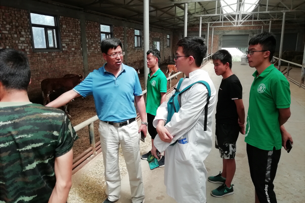 团队与Argenis Rodas 教授等人首先来到瑞科丰农牧科技有限公司开展调研活动。在肉牛文化园第三展区,团队向Argenis Rodas 教授介绍了中国五大肉牛品种,并对各品种的特点、优势做了详细的讲解。在肉牛养殖区,Argenis Rodas 教授将中国与加拿大的肉牛饲喂方式做出了比较:在加拿大,肉牛只有部分时间在牛舍休息,其余时间会在草场上进行采食,而中国的肉牛始终在牛舍,采食人工配制好的饲料。Argenis Rodas 教授也讲述了加拿大严格的肉牛分群管理方式,即将不同品种、不同大小的牛根据实际需要单独分圈饲喂,防止体格小的牛在采食过程中处于劣势等现象的产生。之后Argenis Rodas 教授在尚农进行肉牛屠宰分割实验,团队对其过程进行了参观。