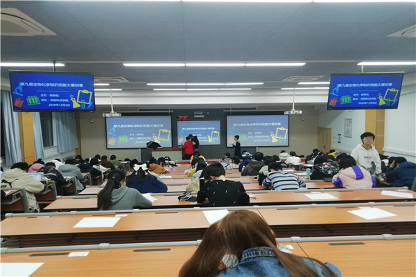 为了考察学生们对生化技能的了解,由教务处主办、动科学院承办的第九届生物化学知识技能大赛初赛于2020年12月6日下午七点半在八号教学楼阶梯教室举办,此次比赛是首次采用手机考试的形式,形式新颖。