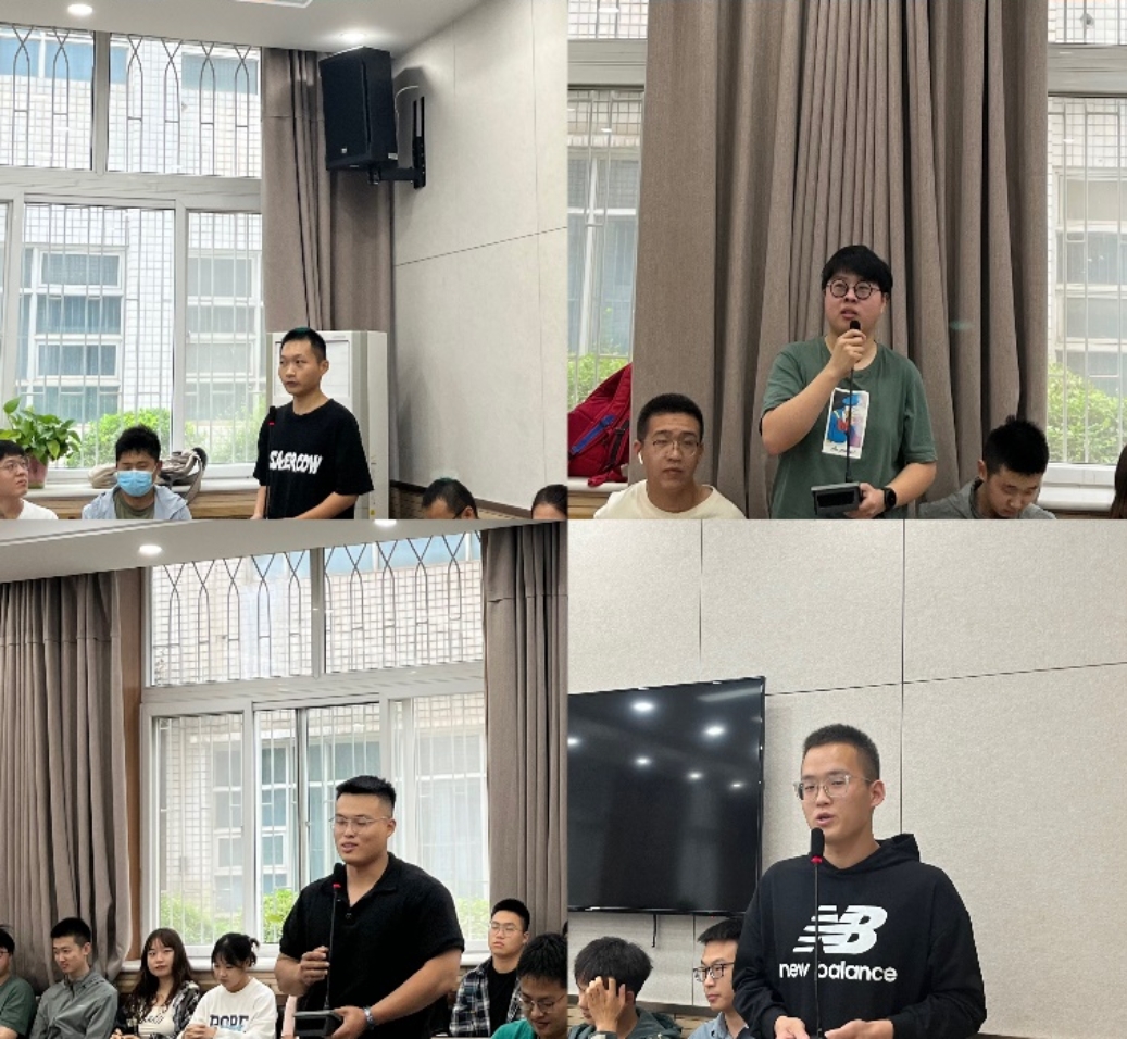 伴随着2022级新生的自我介绍,本次新生-导师见面会的氛围更加热烈起来。团队新生虽来自天南海北,经历不尽相同,却都踌躇满志,坚定选择了这个优秀的团队,选择了并肩奋斗,共同成长。每一位新生短短的3分钟自我介绍,充分体现了大家加入团队大家庭的激动和对未来学习生活的憧憬。随后,导师组成员逐一进行新生寄语,就科研习惯养成、自律和快乐生活经验做了经验分享。