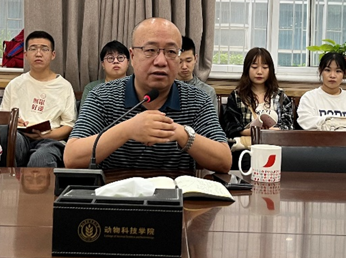 会议在杨小军老师的新生致辞中拉开帷幕。杨小军教授代表团队欢迎并祝贺2022级新生加入动物营养与健康养殖科技创新团队,鼓励新生珍惜加入团队的宝贵机会,争取未来三年做到认知团队,认同团队,进而积极参与团队的党建、文化及科研工作;并强调了文献阅读习惯养成及方法掌握、数据把握和分析等方面对新生迅速适应研究生生活的重要性,并从文献阅读,数据备份,发表文章以及生活习惯上对新生进行了深刻的引导和宝贵的建议。