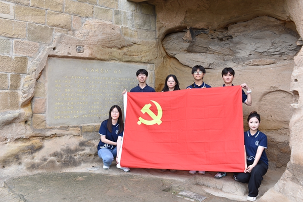 队员们在景区游览过程中,一路学习、探索,马占山将军的石刻上题“还我河山”、左宗棠的 “榆溪胜地”,及革命先烈杜斌题刻的落款为“陕北联合”的石刻“力挽狂澜”,各块石刻字迹苍劲,功力不凡。据统计,红石峡题刻、石匾和各类碑记共有200种之多。它们虽经风雨剥蚀,但其雄姿英貌经久未衰,被人们誉为塞上小碑林、陕北书法艺术的一座宝库。同时,一九二九年四五月间,中共陕北特别委员会在红石峡天门洞室召开了第二次扩大会议,会议集中批判了特委代理书记杨国栋的右倾错误,着重讨论了加强武装斗争的问题,再次确定武装斗争可以有“白色”、“灰色”、“红色”三种形式。这次会议以陕北党组织开展活动指明了方向,为进一步领导和开展兵运及群众运动打下了基础。队员们在天门洞室的石桌前围坐,一同学习红石峡会议的内容及意义,回想抗战年代的峥嵘岁月,感叹革命前辈的顽强奋斗。