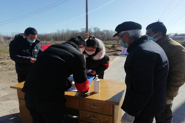 志愿者在为村民量体温