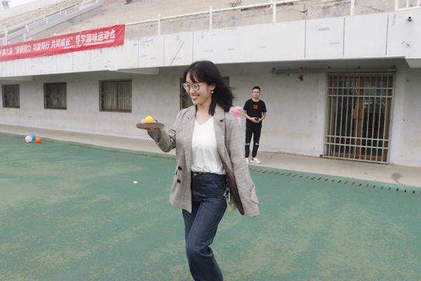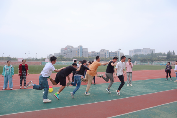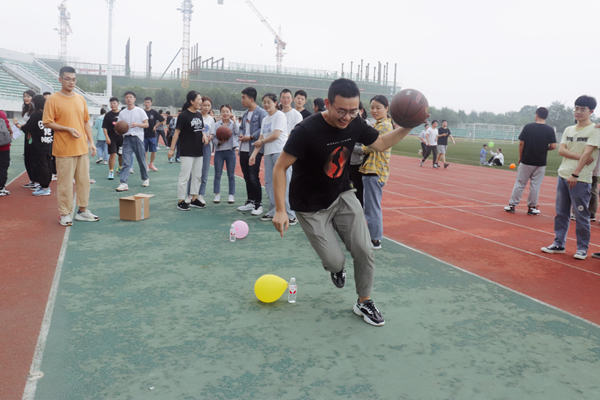 本届趣味运动会设置了“齐心协力”集体往返跑、“横行霸道”背靠背前行、“踩气球”、“两人三足”、“托球赛跑”、“赛龙舟”、“滚雪球”集体往返跑、“摸石过河”、“仙人指路”设障前行、“定点投篮”十个项目。各组参赛队员精诚合作,不仅体现了竞技的趣味性和互动性,也展示了团结协作的良好精神风貌。比赛现场,运动健儿们尽情投入,场下观众加油鼓劲,欢呼声和掌声此起彼伏,比赛过程中洋溢着轻松快乐的氛围。