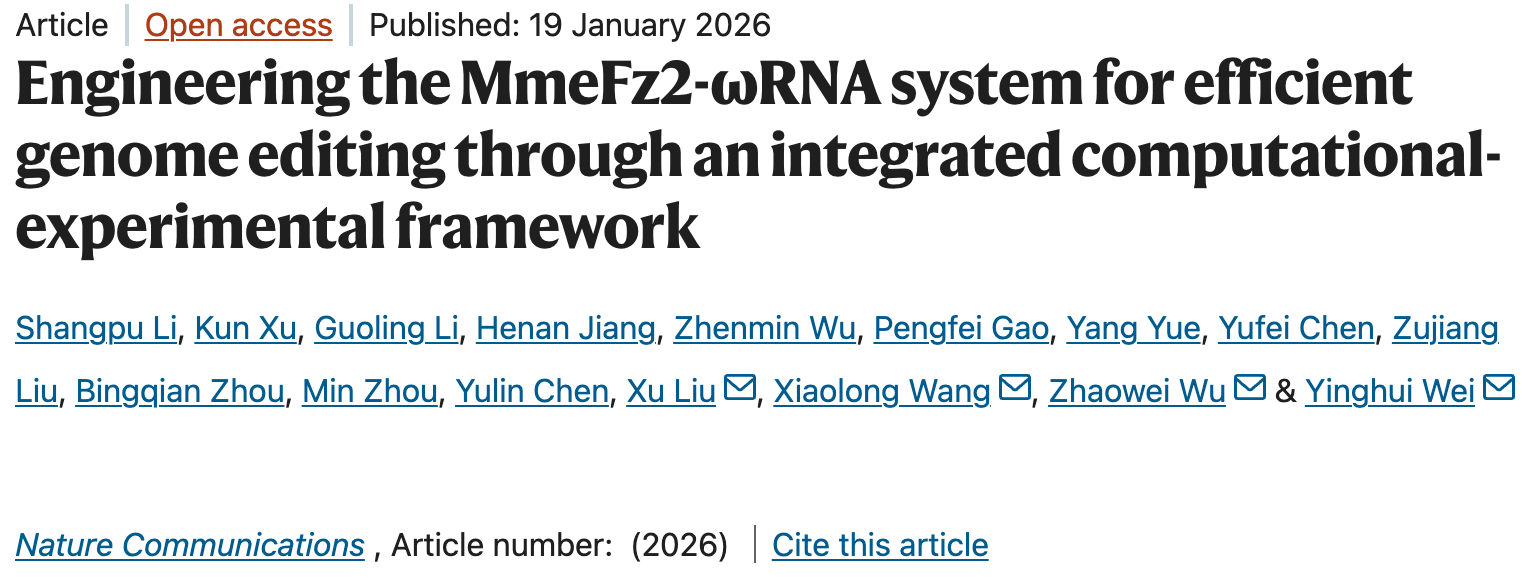 近日,海角网 羊遗传改良与生物育种创新团队联合上海科技大学等国内多家单位,在国际学术期刊《Nature Communications》在线发表了题为 “Engineering the MmeFz2-ωRNA system for efficient genome editing through an integrated computational-experimental framework”的研究论文。该研究采用“AlphaFold3辅助理性设计+EVOLVEpro驱动AI进化”的升级版工程化策略,成功开发出新型微型高效MmeFz2-ωRNA基因编辑系统,为未来精准基因治疗及动物生物育种研究提供了新的底盘工具。