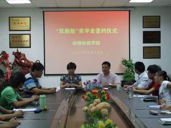 王书记首先代表学院感谢双胞胎集团对学院学生的关心,相信通过本次奖学金及就业实习基地的设立,进一步加深了集团与学院之间的合作,使校企建立了长期的人力资源供需合作关系,实现学校、企业、学生“共赢”。刘总经理详细介绍了集团的发展历史及目前状况,重点强调了集团对人才的渴望,欢迎学院学子将来到集团工作成长。