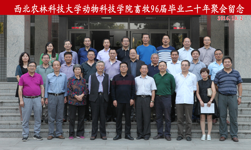 10月2日下午,畜牧96届校友在学院111会议室举行毕业20年聚会师生座谈会。校友会副秘书长张红亮,学院党委书记赵延安、副院长昝林森、孙超、王力及原任课教师代表王彩兰、张英汉、曹社会、杨云贵,辅导员吴锋、班主任任战军参加了座谈会。
