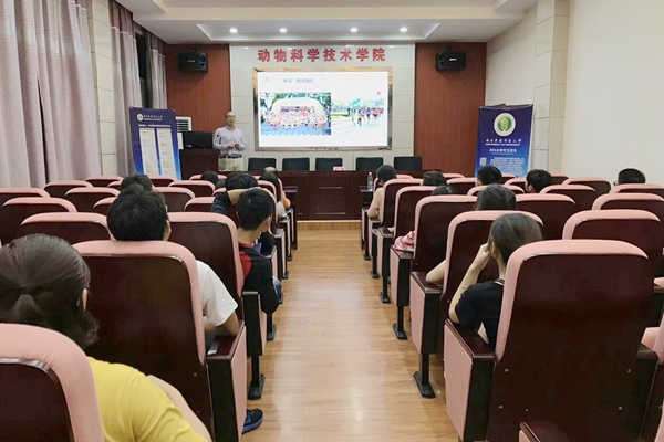 在湖南农业大学动物科学技术学院,张恩平教授面对动物科学、水产养殖学等专业本科生做了题为《多彩校园生活,成就科研人生》的招生宣讲,主要从学校学院简况、学科平台及人才培养、校园文化和奖助体系4个方面介绍了学院的研究生培养情况,并特别介绍了学院专业特色和优势、2017年各专业招生规模、录取以及夏令营活动。与会学生就海角网 的推荐免试、导师的招生指标及复试比例等问题进行了详细的咨询,重点询问了海角网 优秀大学生暑期夏令营活动的选拔录取程序。