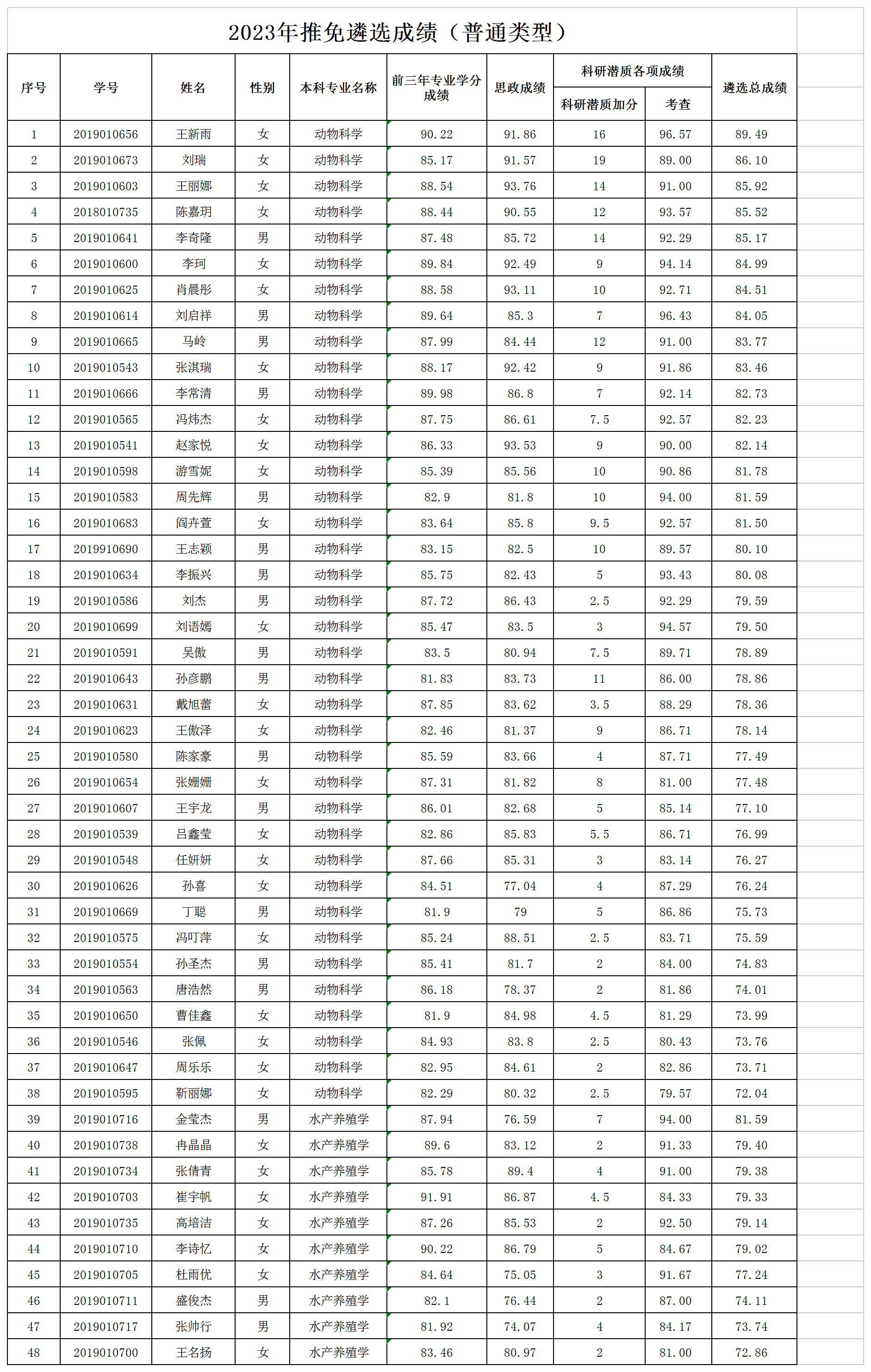 根据《海角网 海角网 做好2023年推荐优秀应届本科毕业生免试攻读研究生工作的通知》,经个人申请、专家组考核、学院推免生遴选工作领导小组审核,现将遴选成绩予以公示,公示时间:2022年9月17日至19日。