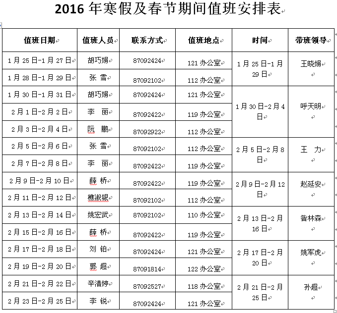 2.1月22日上午11:00前,各单位报送寒假值班安排。