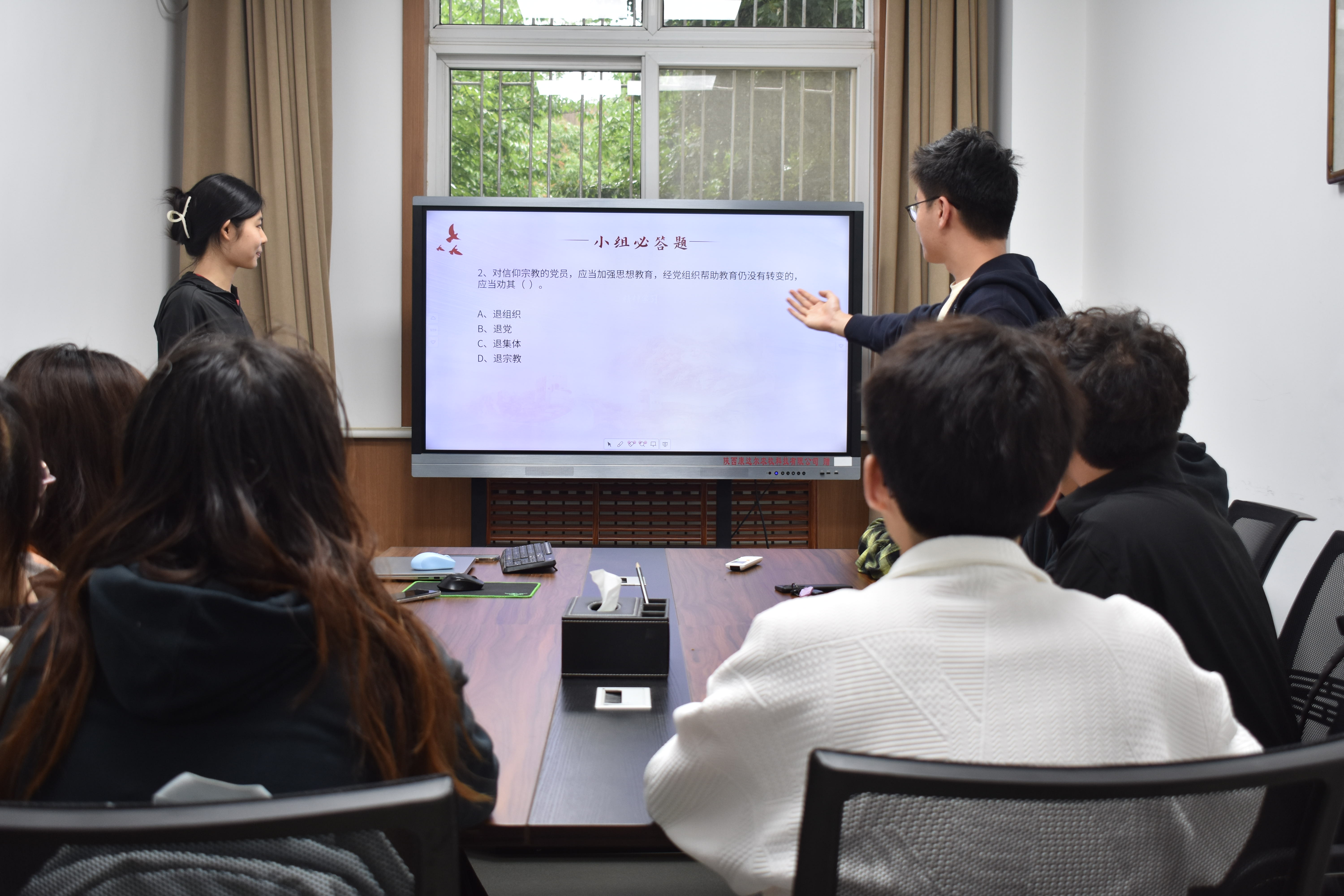 分组竞赛,展现风采。领学结束后,支部同学们开展知识竞赛活动,在比赛过程中,同学们激烈讨论、踊跃回答,充分发挥各小组成员的优势,通过团队合作,共同完成题目。竞赛题目涵盖了党的历史、党的纪律、党的优良传统和作风等多个方面,旨在全面考察同学们对党纪党规的掌握程度,充分营造了“学党章、知党规、严党纪”的浓厚氛围。