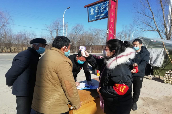 志愿者在为村民量体温