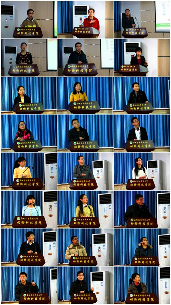 学术报告分别由吉红教授、徐秀容、杨小军、张建勤副教授主持。来自中国农业大学、兰州大学、华中农业大学、华南农业大学、甘肃农业大学以及本校共24位博士生分别做了精彩的学术报告。周小秋教授等七位评审对各位博士生的报告进行了点评,在肯定了他们论文选题、研究方法等方面可取之处的同时,针对他们在科研思路、研究方法、结论凝练等方面存在的问题提出了相关建议。最终根据专家组的现场打分,我校水生生物学专业朱斌同学、中国农业大学草学专业陈文青同学获一等奖;我校草学专业付娟娟、动物遗传育种与繁殖专业吕英华、中国农业大学动物营养与饲料专业时梦、甘肃农业大学动物医学工程专业潘阳阳同学获二等奖;我校动物学专业姜碧杰、动物营养与饲料科学专业孙菲菲、李世召,以及中国农业大学草学专业郭艳萍、动物营养与饲料加工专业李昌武、兰州大学草学专业段慧荣同学获三等奖。