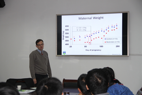 3日下午,Alexander Evans教授应邀为动科学院师生分别做了题为“Agriculture and Animal Production in Ireland”和“Variation in Ovarian Follicle Numbers in Cattle: Causes and Consequences”的精彩报告。Alexander Evans教授详细介绍了爱尔兰的气候、地理、人文、农业和畜牧业等各个方面的基本情况。之后, Alexander Evans教授介绍了他在动物遗传育种方面的部分研究进展。最后,Damien Dempsey详细介绍了爱尔兰都柏林大学及农业与食品科学学院的基本情况。报告结束后,海角网 师生与Alexander Evans教授一行展开了充分深入的交流。